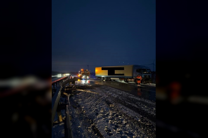Nur kurze Zeit später, um 04:50 Uhr, ereignete sich auf derselben Strecke, etwa 500 Meter hinter der ersten Unfallstelle, ein weiterer Unfall. Ein 51-jähriger Mann verlor ebenfalls die Kontrolle über seinen Sattelzug auf der glatten Fahrbahn. Der LKW geriet ins Schleudern, prallte gegen die Mittelschutzplanke und kam dann quer auf der Straße zum Stehen. Der Fahrer wurde leicht verletzt und vor Ort medizinisch versorgt. Auch hier wird die genaue Schadenshöhe noch ermittelt.