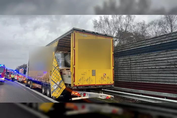 Nach aktuellen Informationen kam das Fahrzeug von der Fahrbahn ab, prallte gegen die Leitplanke und geriet ins Schleudern. Dabei verschob sich die Ladung, durchbrach die Plane des Anhängers und verteilte sich auf der Straße.