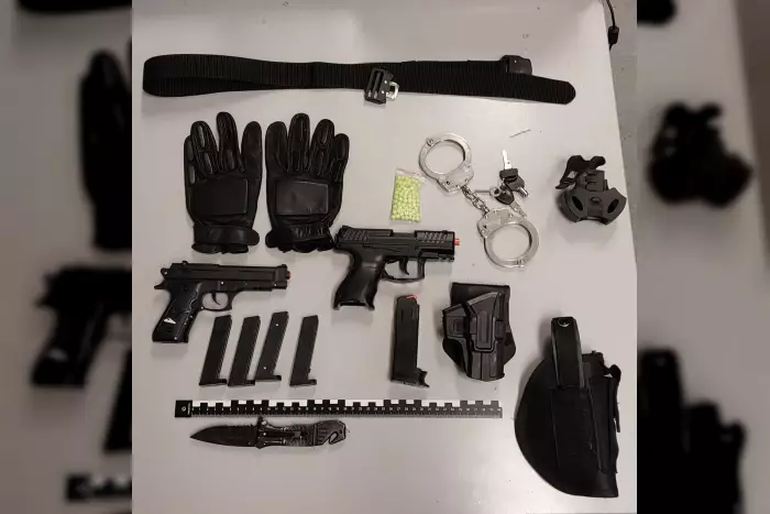 Bei der Durchsuchung nach gefährlichen Gegenständen und weiterem Diebesgut haben die Beamten ein umfangreiches Arsenal am Körper des 22-Jährigen entdeckt. Er trug Holster am Gürtel mit zwei Anscheinswaffen (Softair) und insgesamt fünf Magazinen mit Softair-Munition, ein einsatzbereites Einhandmesser, Handschellen und taktische Schutzhandschuhe. Die Waffen und Gegenstände wurden beschlagnahmt.