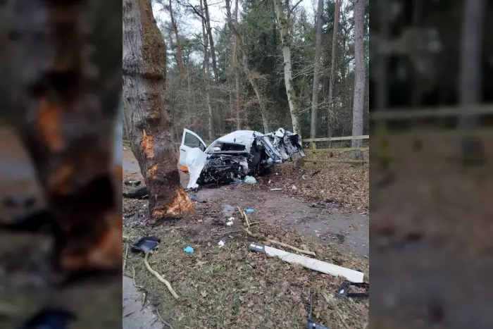 Vor Ort wurde diese Benachrichtigung nicht bestätigt. Ein Lieferwagen (Mercedes Citan) war aus bisher ungeklärter Ursache von der Straße abgekommen und frontal gegen einen Baum geprallt. Den Rettungskräften bot sich ein großes Trümmerfeld. Der Fahrer war bei der Ankunft der Feuerwehr nicht mehr eingeklemmt, verstarb jedoch noch am Unfallort.