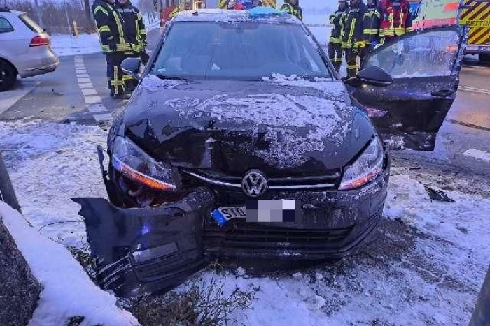 Am heutigen frühen Morgen kam es zu einem Verkehrsunfall, bei dem eine 33-jährige Fahrerin einen 18-jährigen Golffahrer übersah. Beide wurden leicht verletzt.