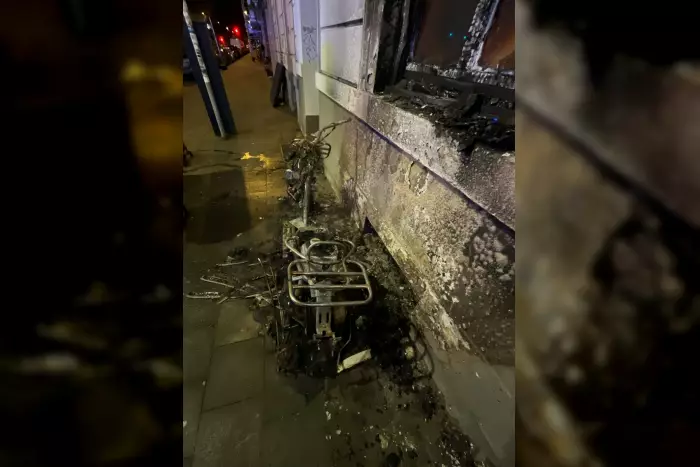 Um 4 Uhr wurde die Polizei wegen des brennenden Kleinkraftrads (ein 50-Kubik-Motorroller) vor einem Mehrfamilienhaus alarmiert. Das Fahrzeug wurde durch das Feuer komplett zerstört. Zudem wurden eine Fensterscheibe und Teile der Fassade beschädigt. Es gab keine Verletzten.