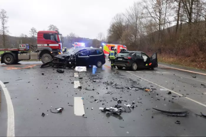 Drei Verletzte nach Zusammenstoß zweier Fahrzeuge auf der B252, hoher Sachschaden und Straßensperrung für 3 Stunden