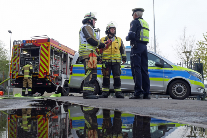 Um 22 Uhr wurden Feuerwehr und Polizei zu dem Feuer in der Herzogstraße, Hausnummer 30, gerufen. Bei ihrer Ankunft entdeckten die Einsatzkräfte ein Feuer an der Eingangsschleuse eines Verwaltungsgebäudes. Die Feuerwehr konnte den Brand schnell löschen. Der entstandene Schaden wird vorläufig auf einen niedrigen vierstelligen Betrag geschätzt.
