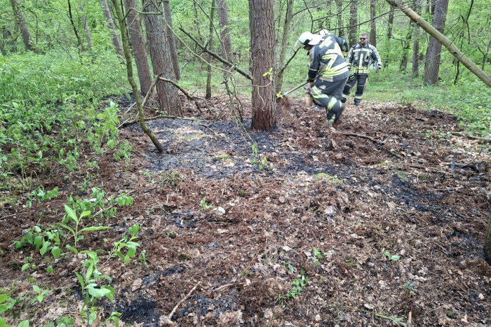 Vor Ort brannte eine Fläche von etwa 45 Quadratmetern in einem Waldstück. Das Feuer, das sich auf das Unterholz ausgebreitet hatte, wurde mit Kübelspritze und Löschrucksäcken gelöscht. Anschließend wurde der Bereich mit einer Wärmebildkamera überprüft. Der Einsatz dauerte etwa eine Stunde.