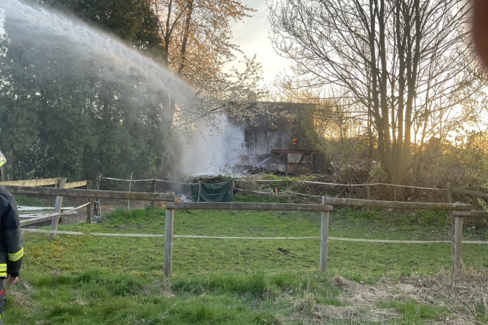 Feuerwehr löscht Brand in alter Hütte, Einsatz dauerte zwei Stunden.