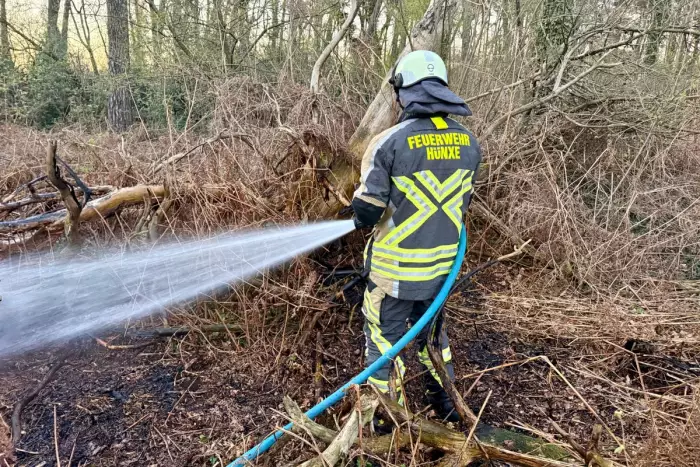 Ein Feuer brach in einem Waldstück aus und betraf eine Fläche von etwa 25 Quadratmetern. Das Feuer wurde mit einem Strahlrohr gelöscht, nachdem es sich auf das Unterholz ausgebreitet hatte. Anschließend wurde der Bereich mit einer Wärmebildkamera überprüft. Der Einsatz dauerte ungefähr 30 Minuten.