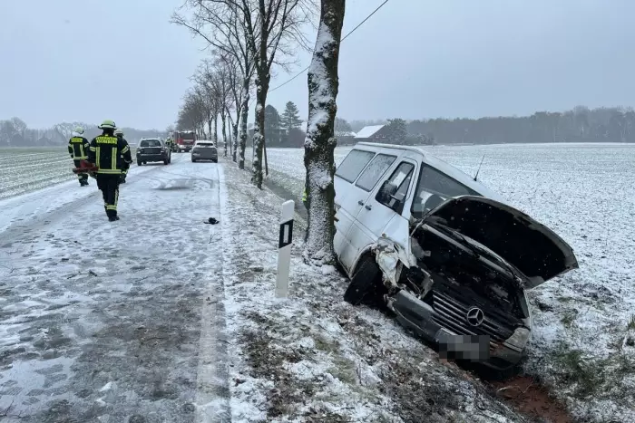 Wegen vereister Straßen kam ein 80-jähriger Fahrer aus Selm am Montag (26.01.26) von der K6 ab. Um 10.45 Uhr fuhr er in Richtung Capelle, als sein Auto nach links von der Straße abkam und gegen einen Baum prallte. Der Mann wurde anscheinend leicht verletzt und wurde mit einem Krankenwagen ins Krankenhaus gebracht.