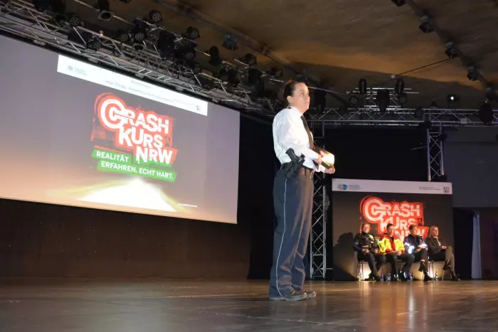 Im Unterricht werden die jungen Leute darauf vorbereitet, was sie in der Bühnenveranstaltung erwartet. Polizeibeamte, Feuerwehrleute, Rettungssanitäter, Notfallseelsorger, Angehörige und Opfer berichten darin von ihren Erfahrungen und Erlebnissen bei Unfällen, an denen junge Menschen beteiligt waren. Weitere Infos rund um „Crash Kurs NRW“ gibt es im Internet unter https://polizei.nrw/artikel/realitaet-erfahren-echt-hart.