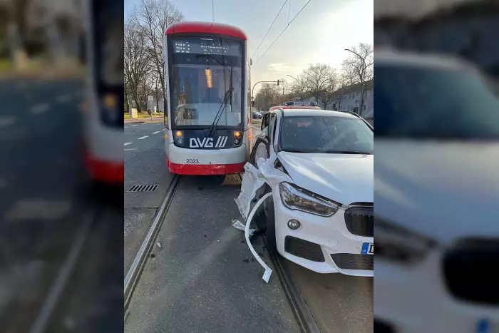 Ein BMW X1 kollidierte mit einer Straßenbahn in Aldenrade. Fahrerin übersah die Bahn, Beifahrerin verletzt, Kinder ins Krankenhaus.