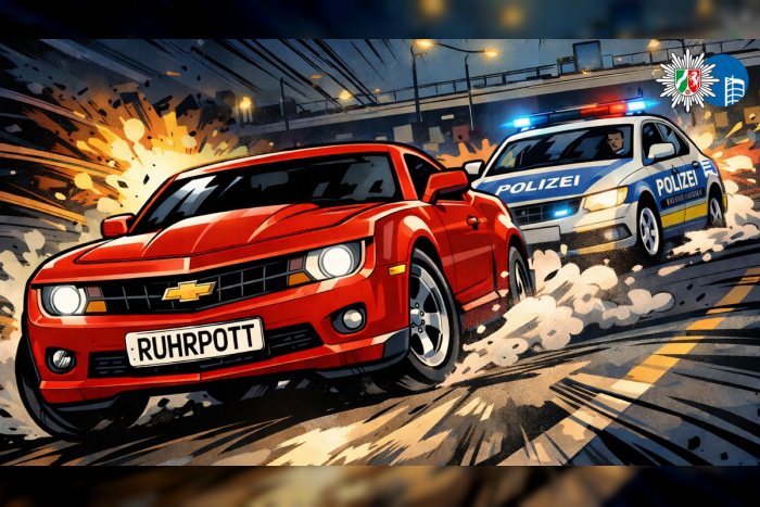 Es ist offensichtlich, dass eine solche Kennzeichenkombination zu einer Polizeikontrolle führen würde – das hintere Kennzeichen gestohlen, auf dem vorderen das Wort „RUHRPOTT“ – und dann noch unter Drogen und ohne „Fleppe“. Trotzdem war ein Fahrer eines Chevrolets am gestrigen Abend gegen 23:30 Uhr auf dem Eugen-Zur-Nieden-Ring überrascht, als er den roten Schriftzug STOP POLIZEI im Rückspiegel sah. Er ignorierte die Anhaltesignale und flüchtete in Richtung Neumühler Straße und dann weiter über die Biefangstraße. Nachdem er am Ende angekommen war, bog er links auf die Königstraße ab und dann auf die A 3 in Fahrtrichtung Köln. Am Autobahnkreuz Oberhausen West plante er, seine Fahrt auf der A 42 in Richtung Dortmund fortzusetzen. Dies gelang jedoch nicht, da er im Autobahnkreuz die Kontrolle über sein Fahrzeug verlor und verunfallte. Anschließend wurde er von den Beamten aus seinem Fahrzeug geholt und festgenommen.