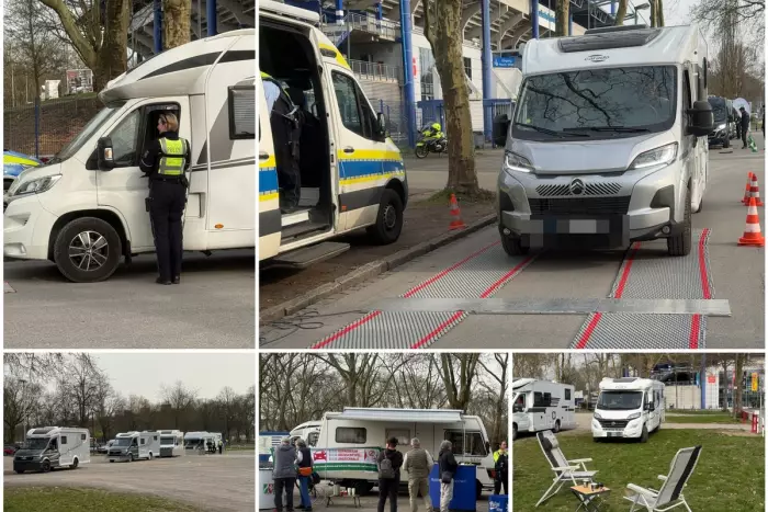 Stunden vor Beginn der Wiegeaktion am Montag (23. März) waren die ersten Camper bereits mit Campingstühlen und Kaffee auf dem Parkplatz an der MSV-Arena versammelt – bereit, ihre Fahrzeuge für die kommende Reisesaison vorzubereiten. Im Rahmen der NRW-Initiative #sicherimStraßenverkehr bot die Polizei Duisburg, unterstützt von der DEKRA und der Verkehrswacht Duisburg, eine kostenlose Fahrzeugwiege-Aktion an.