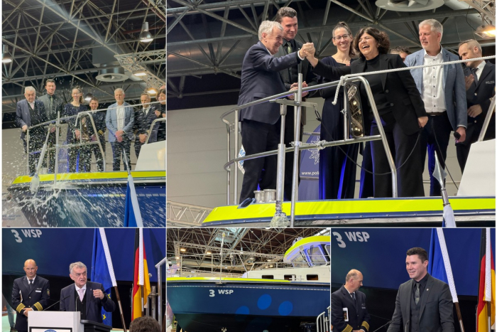 Am Mittwochmittag (21. Januar) wurde die „WSP 3“ feierlich auf der Messe „boot“ in Düsseldorf getauft. Die Patenschaft übernahm die Vizepräsidentin des Landtags NRW, Berivan Aymaz. Um exakt 14:37 Uhr zerschellte die Sektflasche am Bug des Bootes. Den traditionellen Segen spendete die Schifferseelsorgerin Ariane Stedtfeld.