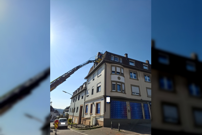 Die Feuerwehr Gevelsberg sperrte die Wittener Straße nachdem ein Dachziegel auf den Gehweg gestürzt war. Ein Dachdecker entfernte weitere lose Ziegel, der Einsatz dauerte über zwei Stunden.
