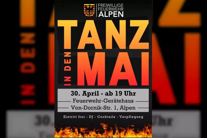 Die Freiwillige Feuerwehr Alpen lädt zum Festwochenende vom 30. April bis 3. Mai ein. Tanz in den Mai und Tag der offenen Tore stehen auf dem Programm.