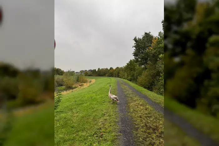 Die Feuerwehr rettete den Jungschwan aus einer misslichen Lage auf dem Gelände eines Hundesportvereins und brachte ihn unverletzt auf eine Freifläche.