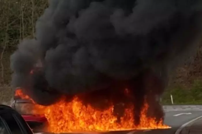 Um 17:00 Uhr wurde ein Fahrzeugbrand im Bereich der Autobahnausfahrt der BAB 3 gemeldet. Als die Einsatzkräfte eintrafen, stand das Auto bereits in Flammen.
