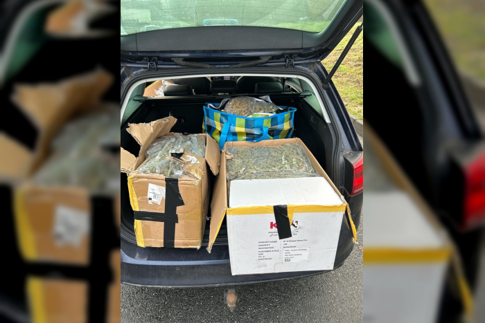 Zoll zieht 31 kg Marihuana im Wert von 300.000 Euro aus dem Verkehr. Fahrer hatte gefälschte Nummernschilder und keine Fahrerlaubnis.