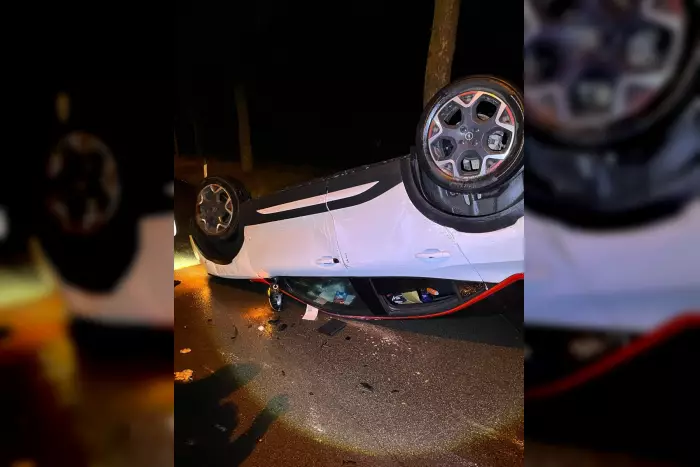 Beim Eintreffen der Beamten sahen sie einen umgekippten weißen Opel Mokka und ein geparktes Audi TT Cabrio eines 65-Jährigen, mit dem der Opel zusammengestoßen war. Die Insassen des verursachenden Fahrzeugs waren nicht mehr vor Ort.