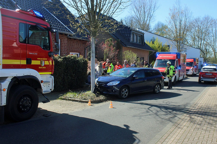 Bei dem Unfall eines Autos mit einem Baum in der Hermann-Barnikol-Straße gestern Nachmittag (01.04.2026) wurde eines der beiden Kinder im Fahrzeug leicht verletzt.
