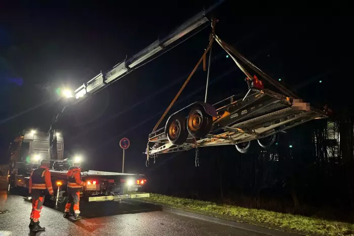 Die Mängel waren so schwerwiegend, dass eine sichere Fahrt zur Prüfstelle nicht möglich war. Daher musste der Anhänger von einem Abschleppunternehmen abtransportiert und zum TÜV gebracht werden.