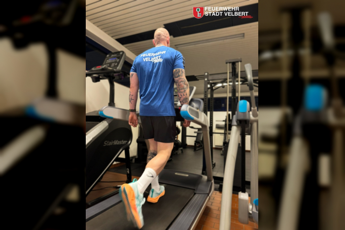 Gemeinsam mit dem Fitnessstudio-Team stellen sich die Einsatzkräfte einer sportlichen Herausforderung: 24 Stunden durchgehend auf dem Laufband, ohne Pause, mit dem Ziel, möglichst viele Kilometer zu sammeln.