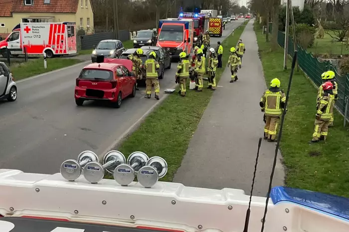 An der Kreuzung Xantener Straße und Grüner Weg in Richtung Rheinberg ereignete sich ein Verkehrsunfall, bei dem drei Autos kollidierten. Drei verletzte Personen wurden vom Rettungsdienst behandelt, wobei eine Person ins örtliche Krankenhaus gebracht wurde. Bei einem der Autos trat Betriebsmittel aus, die von der Feuerwehr aufgefangen und ordnungsgemäß entsorgt wurden. Zudem wurden die Batterien des betroffenen Autos abgeklemmt. Die Einsatzstelle wurde abschließend an die Polizei übergeben.