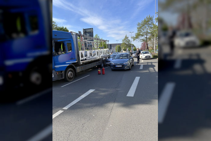 Am Mittwochnachmittag ereignete sich gegen 17:00 Uhr auf der Friedrich-Ebert-Straße kurz vor der Konrad-Adenauer-Brücke aus bisher ungeklärten Gründen ein Verkehrsunfall, an dem insgesamt drei PKW und ein LKW beteiligt waren. Als die Rettungskräfte eintrafen, stellte sich glücklicherweise heraus, dass alle Beteiligten in der Lage waren, ihre PKW zu verlassen. Der Fahrer des PKW, der bei der Kollision leicht unter den Aufbau des LKW geriet, wurde vom Rettungsdienst zur genaueren Untersuchung in ein nahegelegenes Krankenhaus gebracht.