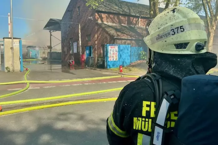 Mülheim an der Ruhr, 28.04.2026 – Am Dienstagnachmittag um 14:58 Uhr wurde die Feuerwehr Mülheim an der Ruhr zu einem Brandeinsatz auf das Gelände eines Gewerbebetriebs an der Ruhrorter Straße gerufen. Schon auf dem Weg dorthin wies eine deutlich sichtbare Rauchsäule den Einsatzkräften den Weg.