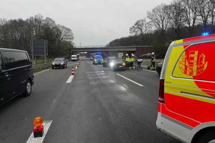 Ein ereignisreicher Start in die Woche für die Feuerwehr Dinslaken. Der Tag begann mit einem größeren Einsatz auf der Autobahn A3. Es wurde ein Verkehrsunfall mit drei beteiligten Fahrzeugen und einer eingeklemmten Person gemeldet. Beim Eintreffen der ersten Einsatzkräfte stellte sich jedoch schnell heraus, dass keine Person eingeklemmt war. Drei verletzte Personen wurden vom Rettungsdienst versorgt, davon wurden zwei ins Krankenhaus gebracht. Die Feuerwehr unterstützte den Rettungsdienst und kümmerte sich um ausgelaufene Betriebsstoffe.