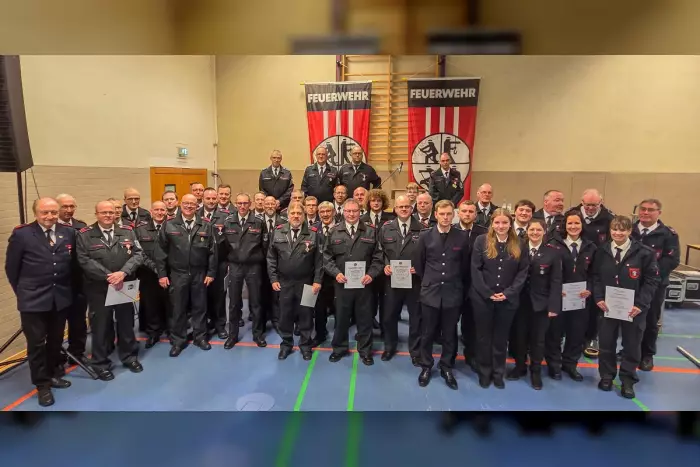 Zu Beginn gedachte die Versammlung der im vergangenen Jahr verstorbenen Kameraden. Besonders gewürdigt wurde Unterbrandmeister Markus Budde, der im Alter von 55 Jahren verstarb. Seit 1989 engagierte er sich aktiv im Dienst der Feuerwehr und wurde 2024 für 35 Jahre Mitgliedschaft mit dem Feuerwehr-Ehrenzeichen in Gold ausgezeichnet. Die Wehrleitung betonte seine langjährige Verbundenheit und seinen Einsatz für die Kameradschaft.