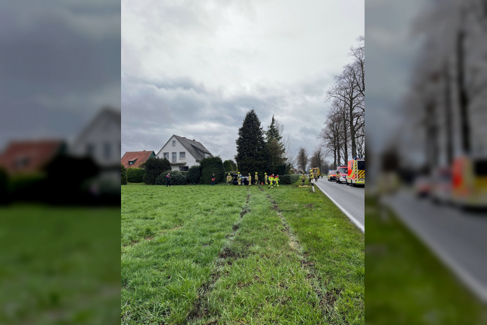 Am Samstagnachmittag um 13:19 Uhr ereignete sich ein Verkehrsunfall, bei dem eine Person schwer verletzt wurde. Ein 41-jähriger Mann aus Paderborn fuhr mit seinem Ford Fiesta auf der Lippstädter Straße in Richtung Lippstadt. In der Nähe des Timmerdamms versuchte er, zwei vor ihm fahrende Autos zu überholen. Ein 39-jähriger Delbrücker, der sich mit seinem Mercedes vor dem Ford Fiesta befand, versuchte gleichzeitig, das vor ihm fahrende Auto zu überholen, das in den Timmerdamm abbog. Dabei übersah er offenbar den Ford, der bereits im Überholvorgang war, und berührte ihn leicht. Der Fahrer des Fords geriet beim Versuch, den Unfall zu vermeiden, von der Fahrbahn ab, durchquerte etwa 50 Meter weit eine nasse Wiese und prallte frontal gegen einen Baum auf dem Grundstück. Er wurde bei dem Unfall so schwer verletzt, dass er ins Krankenhaus gebracht werden musste. Sein Auto wurde von einem Abschleppdienst von der Unfallstelle entfernt. An beiden Autos und dem Baum entstand Sachschaden. Die Unfallstelle wurde für die Aufnahme des Unfalls gesperrt.