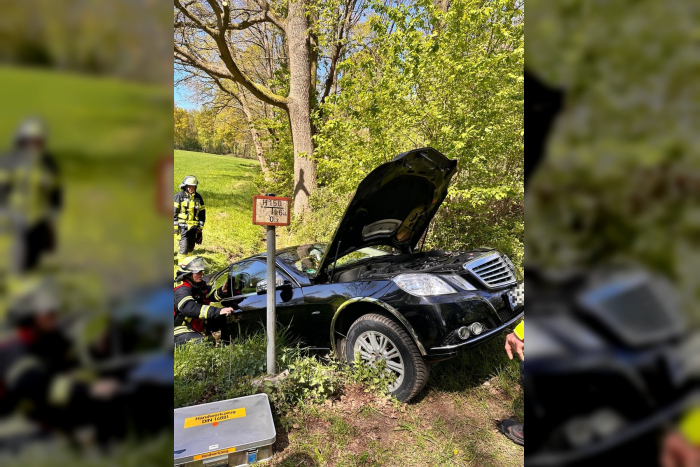 Am Sonntagnachmittag rutschte ein PKW mit dem Heck in einen Straßengraben. Eine Person wurde befreit und das Fahrzeug gesichert.