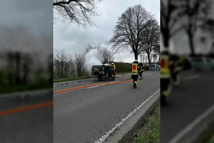 Die Feuerwehr löschte einen brennenden Kompressoranhänger mit einem Pulverlöscher und einem C-Rohr. Der Einsatz endete um 11:15 Uhr.