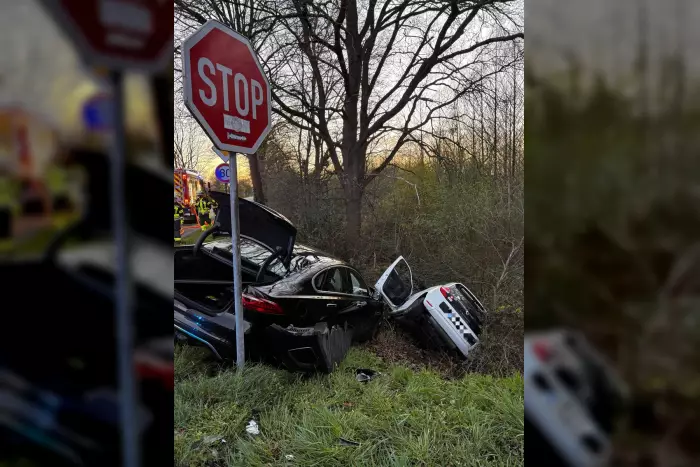 Bei dem Vorfall waren zwei Autos nach einem Verkehrsunfall in einen Graben gerutscht. Die Insassen konnten ihre Fahrzeuge eigenständig verlassen.