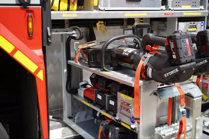Der Rüstzug der Feuer- und Rettungswache 2 traf kurz darauf am Unfallort ein. Das beteiligte Fahrzeug wurde gesichert, um weitere Bewegungen zu verhindern. Gleichzeitig begannen die Einsatzkräfte mit der Rettung der eingeklemmten Person. Lufthebekissen wurden verwendet, um das Fahrzeug anzuheben.