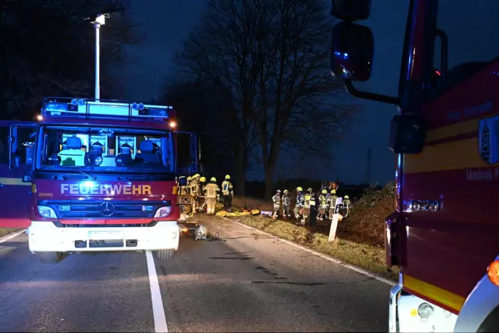 Um 17:15 Uhr wurde die Kreisleitstelle des Rhein-Erft-Kreises am Freitag (30.01.) alarmiert, um die ehrenamtlichen Feuerwehren Stommeln und Pulheim, den Einsatzleitwagen aus Brauweiler, die Hauptwache sowie einen Notarzt- und Rettungswagen zu einem schweren Verkehrsunfall auf die Kreisstraße 24 zwischen Stommeln und Rommerskirchen zu schicken. Gemäß den ersten Berichten sollte ein Auto im Graben liegen und eine Person eingeklemmt sein. Als die ersten Einsatzkräfte wenige Minuten später am Unfallort eintrafen, bestätigten sich diese Informationen. Ein PKW war von der Straße abgekommen und lag seitlich auf der Fahrerseite in der Böschung. Die Fahrerin war schwer verletzt und eingeklemmt. Unter der Leitung von Hauptbrandmeister Alexander Hindrichs musste das Dach an mehreren Stellen von der Karosserie getrennt werden, um die Eingeklemmte zu befreien, während sich die Notärztin um die Schwerverletzte kümmerte. Aufgrund der Verletzungen wurde der Rettungshubschrauber – Christoph Rheinland – angefordert, der die Frau nach intensiver Behandlung im Rettungswagen später in eine Kölner Maximalversorgungsklinik flog. Die Feuerwehr, die mit insgesamt 27 Einsatzkräften und sieben Fahrzeugen vor Ort war, sicherte während der Rettung des Verletzten das Fahrzeug, beleuchtete die Unfallstelle und stellte den Brandschutz sicher. Abschließend beleuchtete die Feuerwehr die Unfallstelle weiter, um die Polizei bei der Unfallaufnahme zu unterstützen. Die letzten Einsatzkräfte beendeten den Einsatz nach knapp zweieinhalb Stunden. Die K24 war während der gesamten Maßnahmen in beide Richtungen für den Verkehr gesperrt.