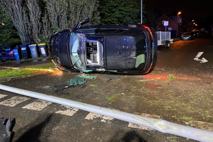 Am späten Samstagabend (11. April, 22:30 Uhr) soll ein 21-Jähriger in seinem Audi RS3 auf der Moerser Straße von der Fahrbahn abgekommen, mit einem Ampelmast, einer Laterne sowie Verkehrsschildern zusammengestoßen sein und sich mit seinem Auto überschlagen haben.
