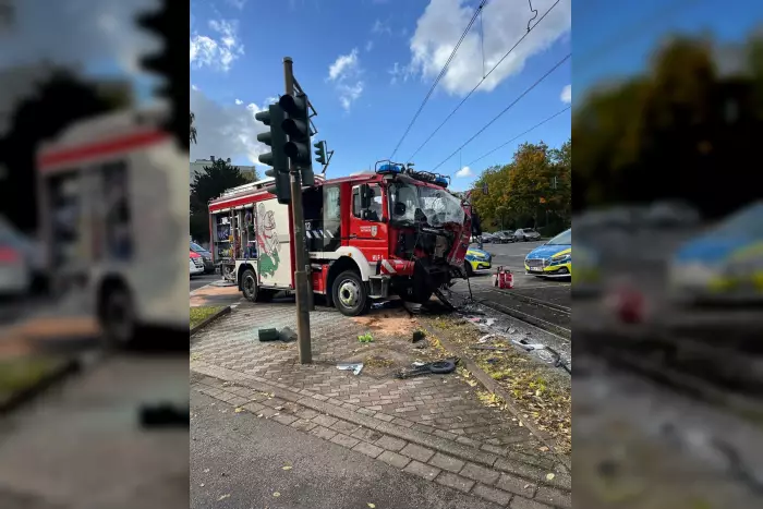 Unfall: Löschfahrzeug kollidiert mit Straßenbahn