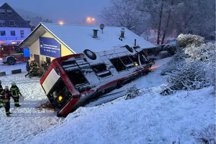 Am Morgen des 02.01. ereignete sich ein Verkehrsunfall auf der Bergstraße, bei dem ein Linienbus aufgrund des Wetters verunfallte. Zwei Personen wurden leicht verletzt, eine Person erlitt schwere Verletzungen.