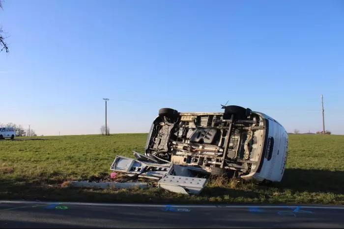 Fahrzeug überschlägt sich nach Zusammenstoß, Fahrer verletzt ins Krankenhaus gebracht