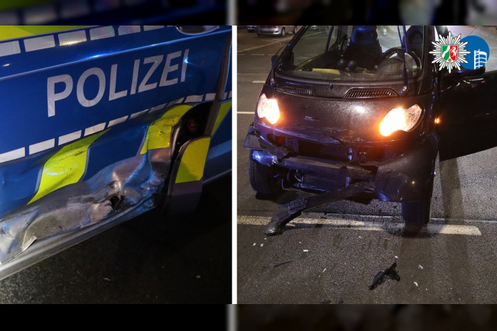 In der Nacht vom 25.01.2026 ereignete sich gegen 00:18 Uhr ein Verkehrsunfall mit Sachschaden an der Kreuzung Mülheimer Straße / Falkensteinstraße / Ebertstraße, bei dem ein Polizeifunkstreifenwagen (Mercedes Vito) aus Oberhausen beteiligt war.
