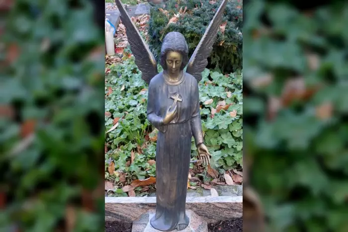Bronzene Engelsfigur auf Friedhof in Viersen entwendet. Hinweise zum Verbleib gesucht, bitte beim Kriminalkommissariat 2 melden. Tel: 02162/377-0.