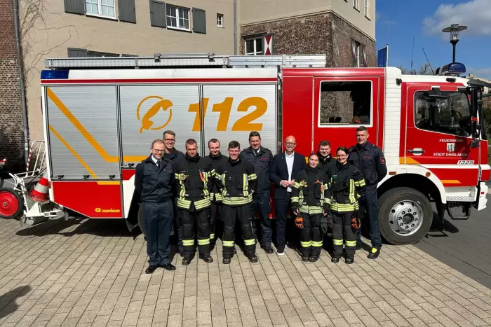 Die Feuerwehr Dinslaken stellt die Ausbildung ihrer hauptamtlichen Nachwuchskräfte im Brandschutz neu auf. Mit der Einführung der ,,Lehrfeuerwache“ wird die Wachausbildung künftig strukturierter und praxisnäher gestaltet. Bei einigen Feuerwehren wird unter dem Begriff „Training on the job“ bereits ein ähnliches Konzept umgesetzt, bei dem ein Löschfahrzeug fast komplett durch Auszubildende besetzt wird und am Einsatzgeschehen teilnimmt. Angehende Feuerwehrleute, also sogenannte Brandmeisteranwärterinnen und -anwärter werden in einer 18-monatigen Ausbildung auf den Einsatz in Feuerwehr und Rettungsdienst vorbereitet. Bereits ausgebildete Notfallsanitäter*innen können diese Ausbildung auf 13 Monate verkürzen. Die schulischen Ausbildungsinhalte werden an den Feuerwehrschulen in Duisburg und Bocholt durchgeführt. Die praktische Ausbildung findet dann in einem mehrmonatigen Wachpraktikum in Dinslaken statt. Dabei liegt der Fokus darauf, Theorie und Praxis gezielt zu verbinden, um Anwärterinnen und Anwärter optimal auf den Einsatzdienst vorzubereiten. Gemeinsam mit zwei Ausbildern besetzen die Brandmeisteranwärter*innen ein Löschfahrzeug im Tagesdienst von 8:00 bis 16:00 Uhr. Neben Sporteinheiten, praktische als auch theoretische Einheiten, wird das Fahrzeug auch bei kleineren, weniger kritischen, Einsätzen, z.B. Tragehilfen für den Rettungsdienst oder bei glimpflichen Verkehrsunfällen eingesetzt. Zusätzlich soll bei entsprechenden Einsätzen auch mit den Feuerwehren in Hünxe und Voerde zusammengearbeitet werden, sodass das Ausbildungsfahrzeig bei Bedarf auch im Rahmen der nachbarschaftlichen Hilfe eingesetzt werden kann. Das Thema Ausbildung wird bei der Feuerwehr Dinslaken von Sachbearbeiter Brandamtmann Andreas Jühlke verantwortet. Jühlke und sein Team erhalten seit dem Oktober letzten Jahres tatkräftige Unterstützung. Hauptbrandmeister Christian Traud und Robin Altbürger sind seitdem in der Funktion des Gruppenführer-Ausbilders eingesetzt. Neben ihrer Funktion im Einsatzdienst als Führer eines Löschfahrzeugs oder als Notfallsanitäter auf einem Rettungswagen, sorgen die Gruppenführer-Ausbilder dafür, dass die Thematik Aus- und Fortbildung einen hohen Stellenwert im Wachalltag einnimmt. Während im Rettungsdienst schon seit geraumer Zeit Praxisanleiter eingesetzt werden und auch vom Einsatzdienst freigestellt sind, um die praktische Ausbildung von Notfallsanitätern zu betreuen, fehlt im Brandschutz ein entsprechendes Pendant. So ist ein Verdienst aller Kolleginnen und Kollegen, dass das Projekt Lehrfeuerwache erfolgreich in die Abläufe auf der Feuer- und Rettungswache implementiert werden konnte. Bürgermeister Simon Panke überzeugte sich persönlich von dem gelungenen Konzept der Lehrfeuerwache, freute sich über diese Höherentwicklung in der Ausbildung und dankt allen, die das Projekt ermöglichen. Die Feuerwehr Dinslaken zeigt sich einmal mehr als attraktiver Arbeitgeber und trägt zu einer hohen Einsatzbereitschaft der Nachwuchskräfte bei.