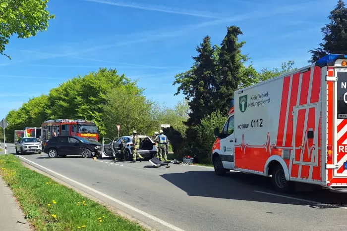 Wesel: Verkehrsunfall mit drei PKW und eingeklemmter Person