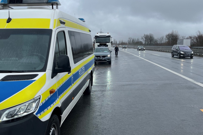 Bereits am Mittwoch, den 11. Februar, fanden intensive Kontrollen von Lastkraftwagen statt. Diese führten auf der B 480 zu einem 33-jährigen Fahrzeugführer aus Moldau. Er fuhr einen deutschen 40-Tonner Sattelzug mit überhöhter Geschwindigkeit. Der Mann verfügte über keine gültige Aufenthaltsgenehmigung. Aufgrund der schwerwiegenden Verstöße erschien das Ausländeramt vor Ort und stellte die Dokumente des Mannes sicher. Sowohl den Fahrzeugführer als auch das ihn einsetzende Unternehmen erwartet ein entsprechendes Strafverfahren.