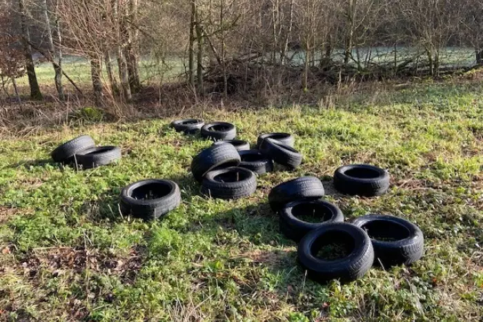 Altreifen wurden illegal an der L 169 entsorgt. Polizei bittet um Hinweise aus der Bevölkerung.