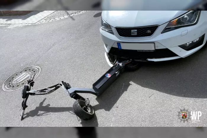 Die beiden Fahrzeuge stießen zusammen, wobei der Rollerfahrer leichte Verletzungen erlitt. Die Lenkstange des E-Scooters wurde verbogen, die Frontstoßstange des Autos beschädigt. Der Gesamtschaden wird auf mehrere hundert Euro geschätzt.