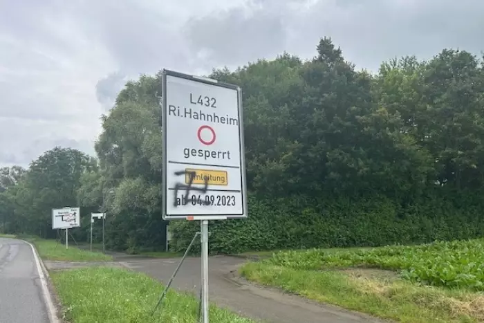 In Friesenheim wurde ein Kundenstopper im Bereich des Sportvereins mit einem Hakenkreuz besprüht.