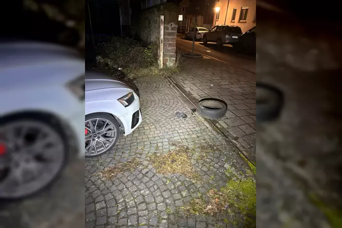 Als ein 37-jähriger Fahrer aus dem Kreis Germersheim am 31.01.2026 gegen 21:15 Uhr einen Parkplatz in der Königstraße verließ, fuhr er über einen alten Reifen, der in der Ausfahrt abgelegt worden war. Es wird vermutet, dass der Reifen absichtlich auf einer Stahlfelge dort platziert wurde. Der Unfall verursachte einen Schaden am Auto in Höhe von ca. 3000 Euro.